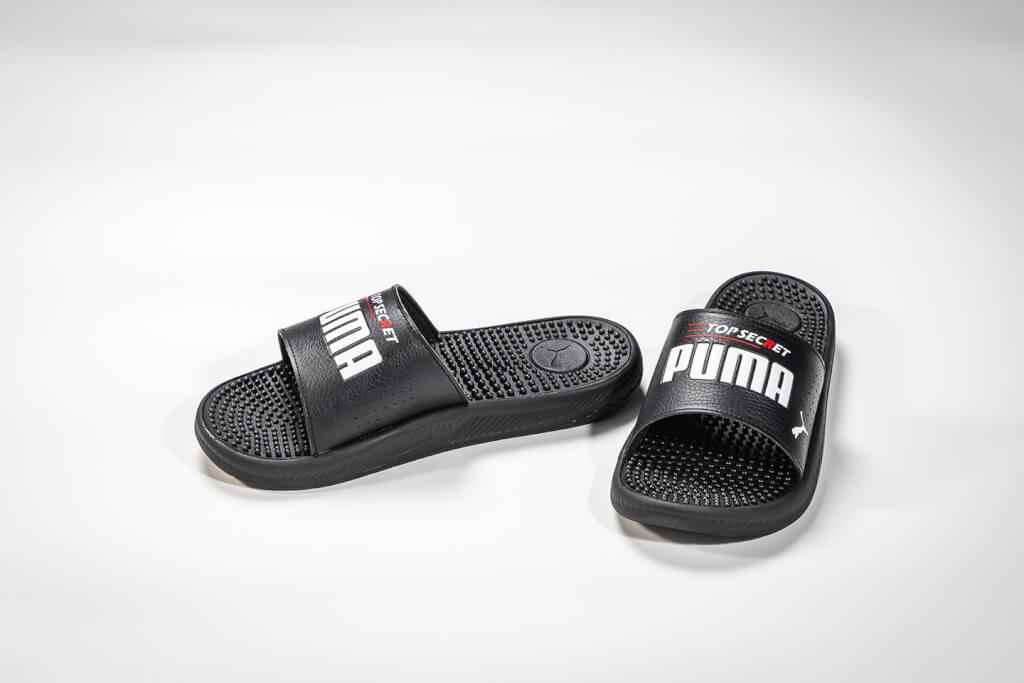 - PUMAロゴの上に、トップシークレットロゴをあしらったサンダルです。